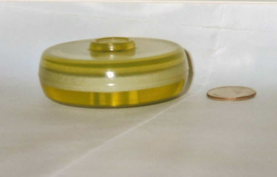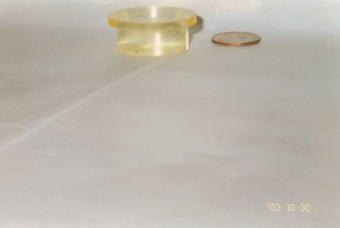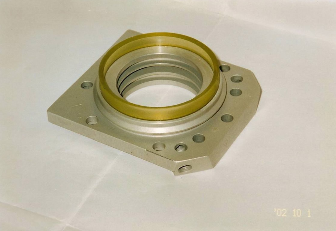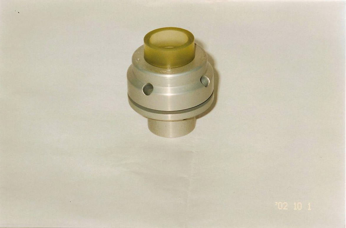 Original equipment knurled brass ring after wear it was thrown out. My Solution: aluminum core with urethane. After wear urethane removed and core re-used.