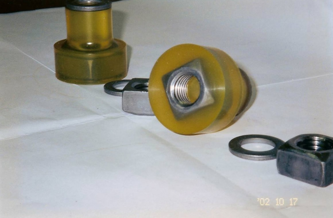 Aluminum kept pulling out. Near left: Solution: Bonded undercut urethane.