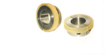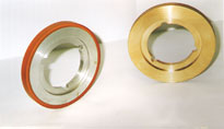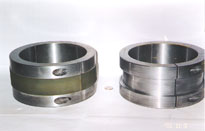 Original equipment knurled brass ring after wear it was thrown out. My Solution: aluminum core with urethane. After wear urethane removed and core re-used.