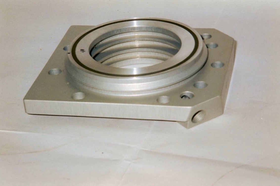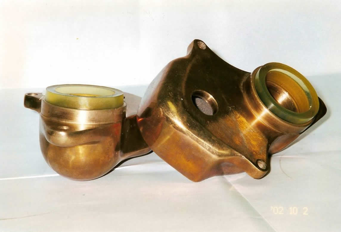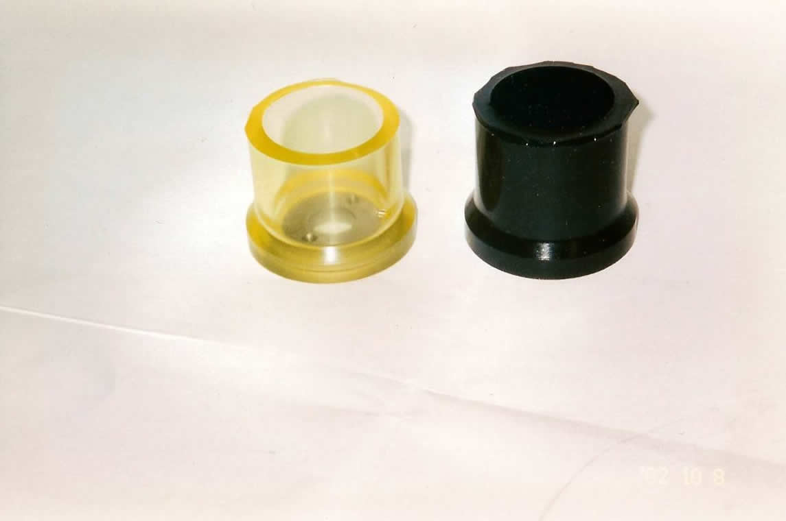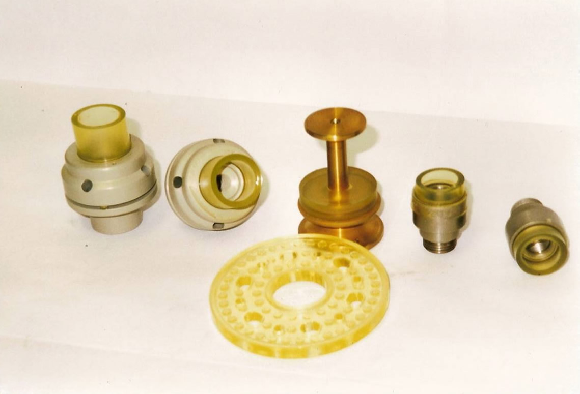 Original equipment knurled brass ring after wear it was thrown out. My Solution: aluminum core with urethane. After wear urethane removed and core re-used.